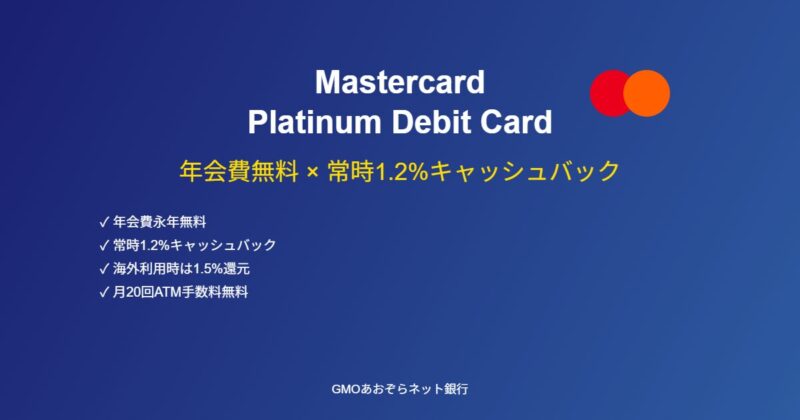 GMOあおぞらネット銀行Mastercardプラチナデビットカード完全解説|年会費無料で常時1.2%キャッシュバック